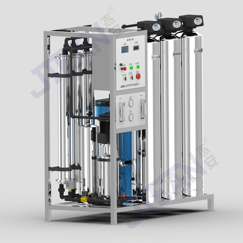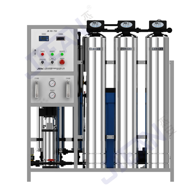 产品型号 JN-RO-750 产品尺寸 160cm *150cm * 70cm 产品重量 260KG左右 进水口径 1寸 出水口径 4分 浓水口径 4分 额定功率 3.3KW 电压 220V 产水量 0.75T/H 产品材质 304不锈钢外壳